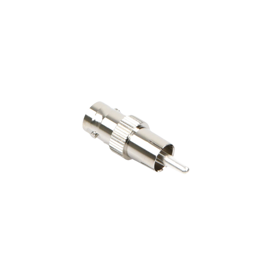 Adaptador de BNC Hembra a RCA Macho en 50 Ohm para Fono, uso en Aplicaciones de Audio-Video, Níquel/ Plata/ Delrin.
