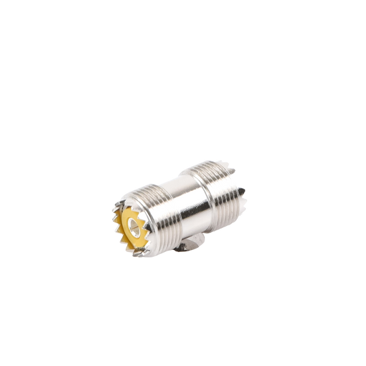 Adaptador Barril en Línea, de Conector UHF Hembra (SO-239) a UHF Hembra (SO-239), Niquel/ Plata/ Dap.