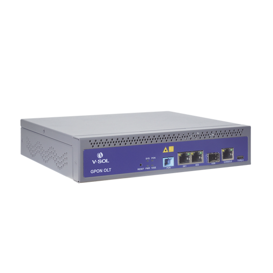OLT de 1 puerto GPON con 3 puertos Uplink (2 puertos Gigabit Ethernet + 1 puerto SFP/SFP+) , hasta 128 ONUS,
