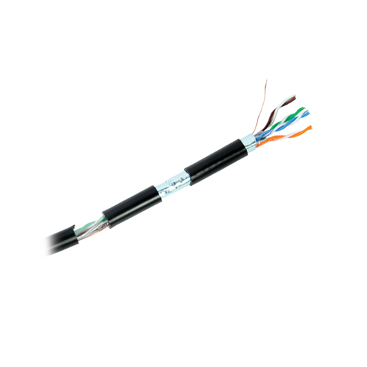 Bobina de cable de 305 m, Cat5e , FTP, blindado, para intemperie, color negro, UL, para aplicaciones en CCTV, redes de datos.