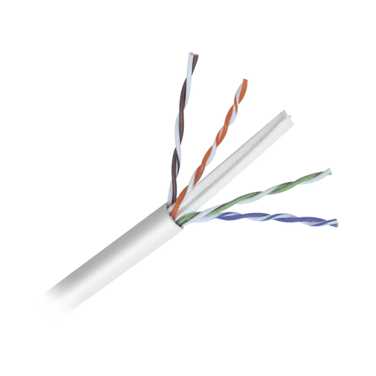 Bobina de cable de 305 m, ( 1000 ft ), Cat5e, alto rendimiento, color blanco, UL, para aplicaciones en CCTV, redes de datos. Uso en interior