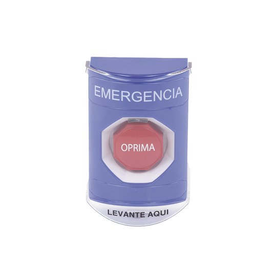 Botón de Emergencia en Español con Tapa Protectora de Policarbonato Súper Resistente, Restablecimiento con Llave y Sirena