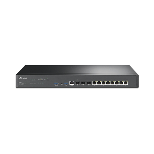 Router VPN - SDN Multi-WAN 10G / 1 puerto WAN SFP+ 10G / 1 puerto WAN/LAN SFP+ 10G / 1 puerto WAN/LAN SFP 1G / 8 puertos LAN/WAN / 2.3 Millones Sesiones Concurrentes / Administración Centralizada OMADA SDN.