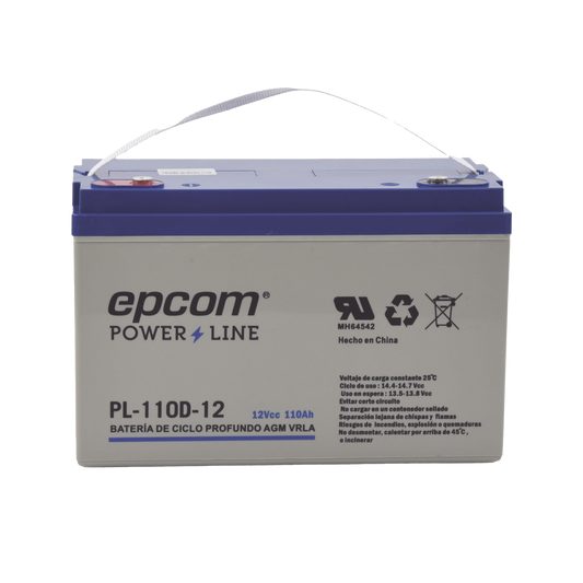 Batería Ciclo Profundo 12V @ 110 Ah / AGM-VRLA / Uso en Aplicación Fotovoltaica /Terminales Tipo Tornillo HEX M6