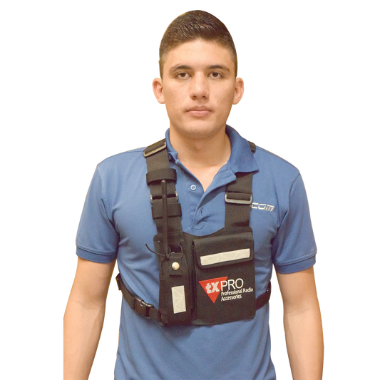 Pechera Universal con soporte para radio, sostén de bolígrafo y seguridad para la bolsa con cinta adherente. Logo TX-PRO.