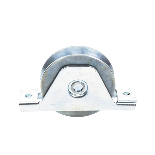 (336V-100) Rueda con ranura en V para montaje empotrado de 4" / Capacidad para puertas de hasta 840 lb (380 kg) / 2 rodamientos / 15/16" de ancho / Galvanizado