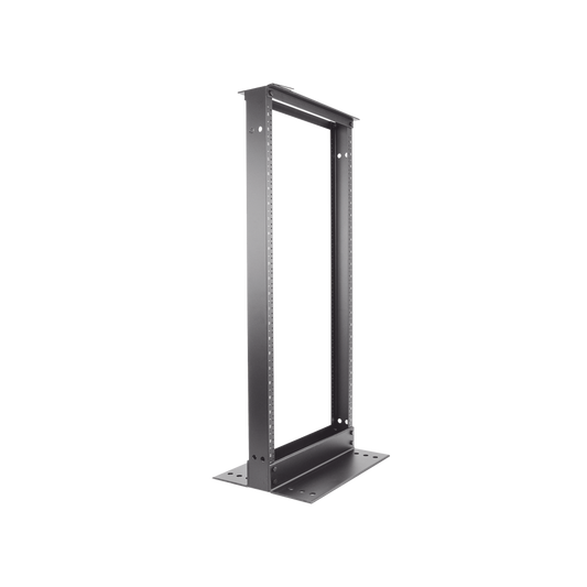 Rack de Dos Postes Estándar de 19 in, Rieles Numerados y Roscados #12-24, Fabricado en Aluminio, 24 Unidades de Rack, Color Negro