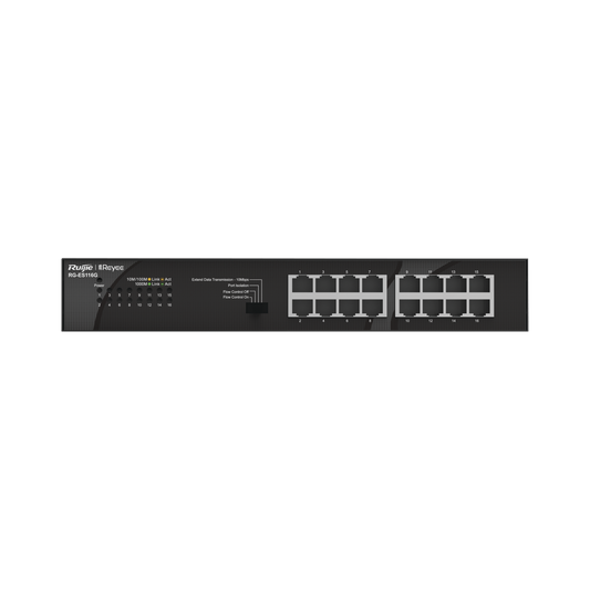 RG-ES116G, switch no administrable, no PoE de 16 puertos 10/100/1000Mbps.