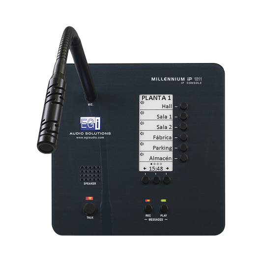 CONSOLA DE AVISOS MULTIZONA IP CON DISPLAY, MICRÓFONO Y GARBADOR DE MENSAJES