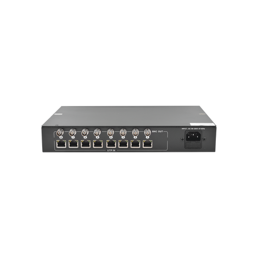 Kit de TRANSCEPTOR ACTIVO DE 8 CANALES / VIDEO+PODER en un solo Cable UTP / 150 metros en 4K, 200 metros en 5 MP/ Envía 36 Vcc y Recibe 12 Vcc / TODO INCLUIDO PARA RACK / Compatible con cámaras HD-TVI/CVI/AHD/CVBS / INSTALACIÓN LIMPIA