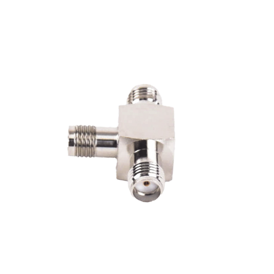 T-Shaped Adapter, Triple SMA Female Connectors, Nickel/Gold/Teflon.