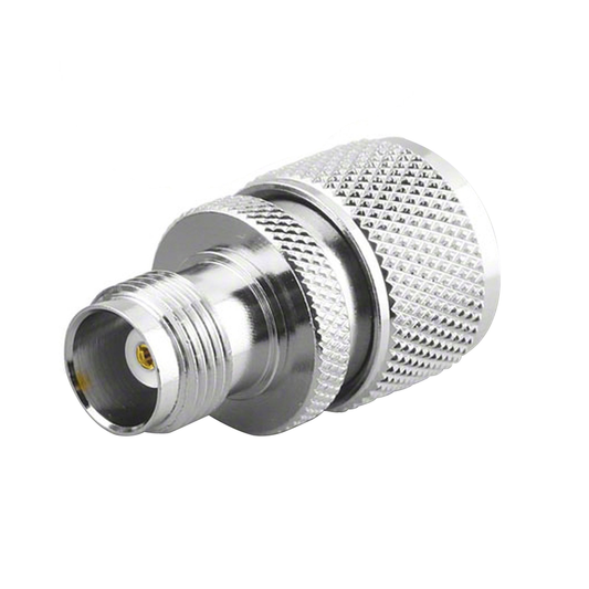 TNC Female to N Male Inline Adapter, Nickel/Gold/Teflon.