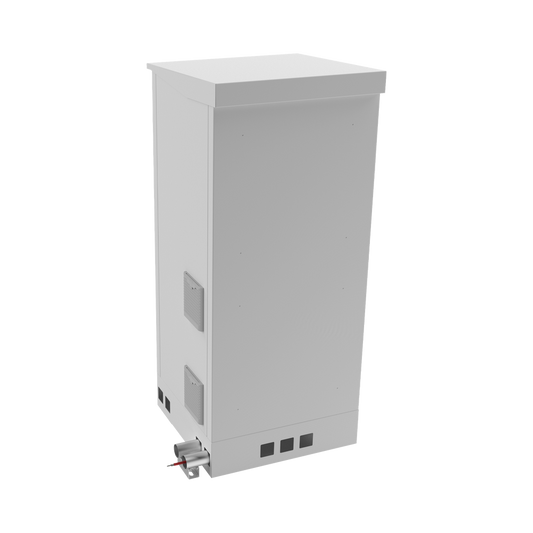 Outdoor Floor Cabinet with Fans and Thermostat, 16U 19" Rack + Battery Storage.