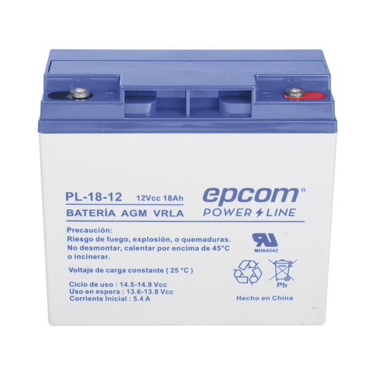 Backup Battery for electronic equipment / UL / 12V @ 18 Ah / AGM-VRLA Technology / Use in: Intrusion Alarms / Fire / Access Control / CCTV / HEX Screw Terminals.