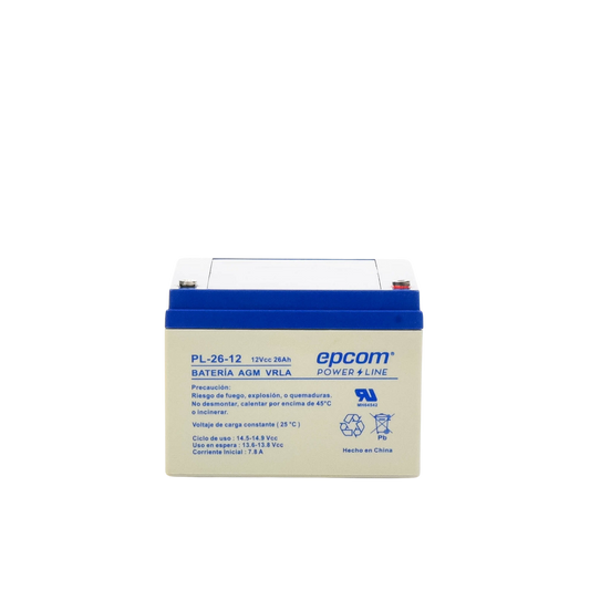 Backup Battery for electronic equipment / UL / 12V @ 26 Ah / AGM-VRLA Technology / Use in: Intrusion Alarms / Fire / Access Control / CCTV / F1 Type Terminals.