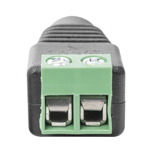 3.5mm polarized 12V DC female jack adapter / Screw type terminals / Polarized (+/-) / Ideal for CCTV cameras.