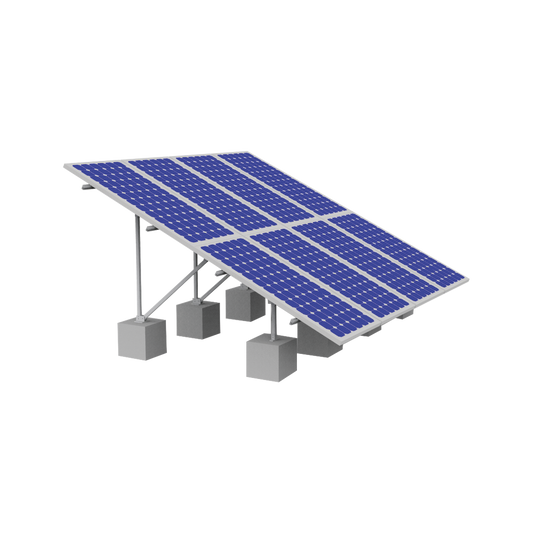 Aluminum mounting on a concrete roof or floor for a 2 x 4 photovoltaic module array, Starter line.