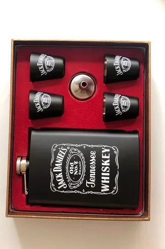 Jack Dani Liquor Bottle, Glasses, and Funnel Set