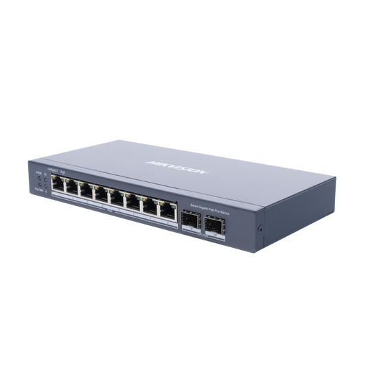 Gigabit PoE+ Switch / Manageable / 8 10/100/1000 Mbps PoE+ ports / 2 SFP ports / remote configuration from Hik-ProConnect / PoE up to 250 meters / 110 W