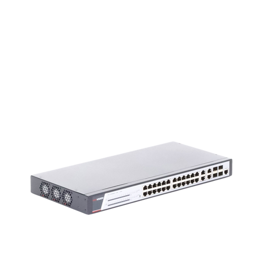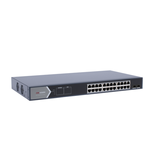Gigabit PoE+ Switch / Manageable / 24 10/100/1000 Mbps PoE+ ports / 2 SFP ports / remote configuration from Hik-ProConnect / PoE up to 250 meters / 370 W