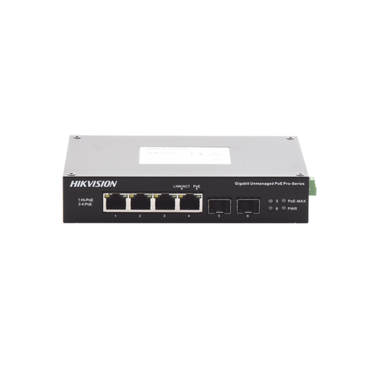 Gigabit PoE+ Switch / Manageable / 16 10/100/1000 Mbps PoE+ ports / 2 SFP ports / remote configuration from Hik-ProConnect / PoE up to 250 meters / 225 W