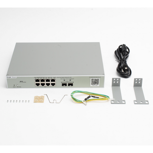 L2+ Managed Switch with 10 Gigabit ports (1-8 PoE+), 2 SFP for 1Gb / 2.5Gb fiber, free cloud management, 125w