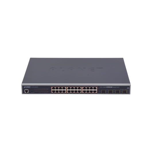 24-port 10/100/1000T PoE+ Managed L2+ Switch with 4 Gigabit TP/SFP combo ports