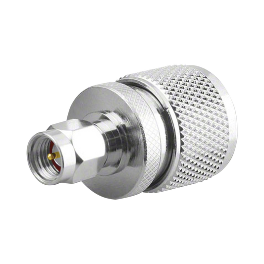 Inline Adapter, Reverse SMA Male to N Male Connector, Nickel/Gold/Teflon.