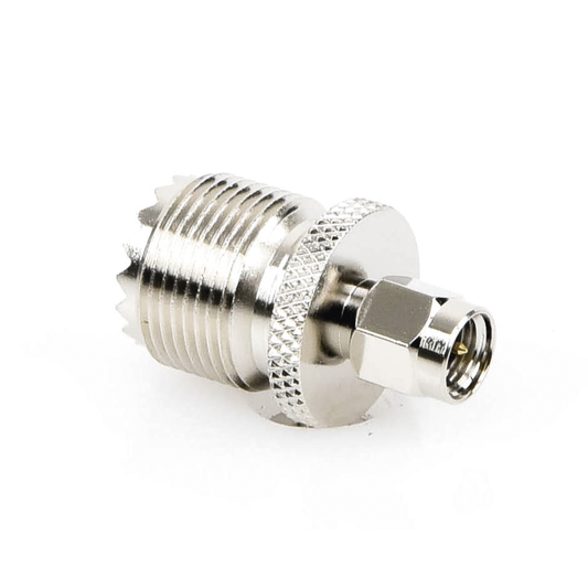Inline Adapter, SMA Male to UHF Female (SO-239) Connector, Nickel/Gold/Teflon.