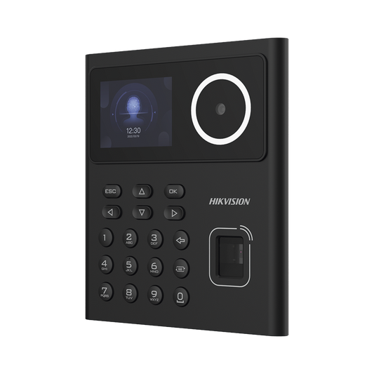 Min Moe WiFi Terminal for Facial and Fingerprint Recognition with MIFARE reader / IP65 Exterior / Up to 1.5 meters in facial reading / Supports P2P Hik-Connect / 1,500 Faces / 3,000 Fingerprints / Video intercom / POE.