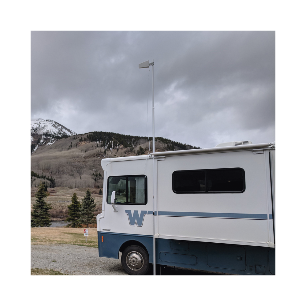 Con su antena exterior elevada hasta 7.6 m de altura en su poste de antena telescópica, el Connect RV 65 detiene las llamadas perdidas mientras mejora la calidad de voz, la velocidad de datos, la transmisión de video y más.