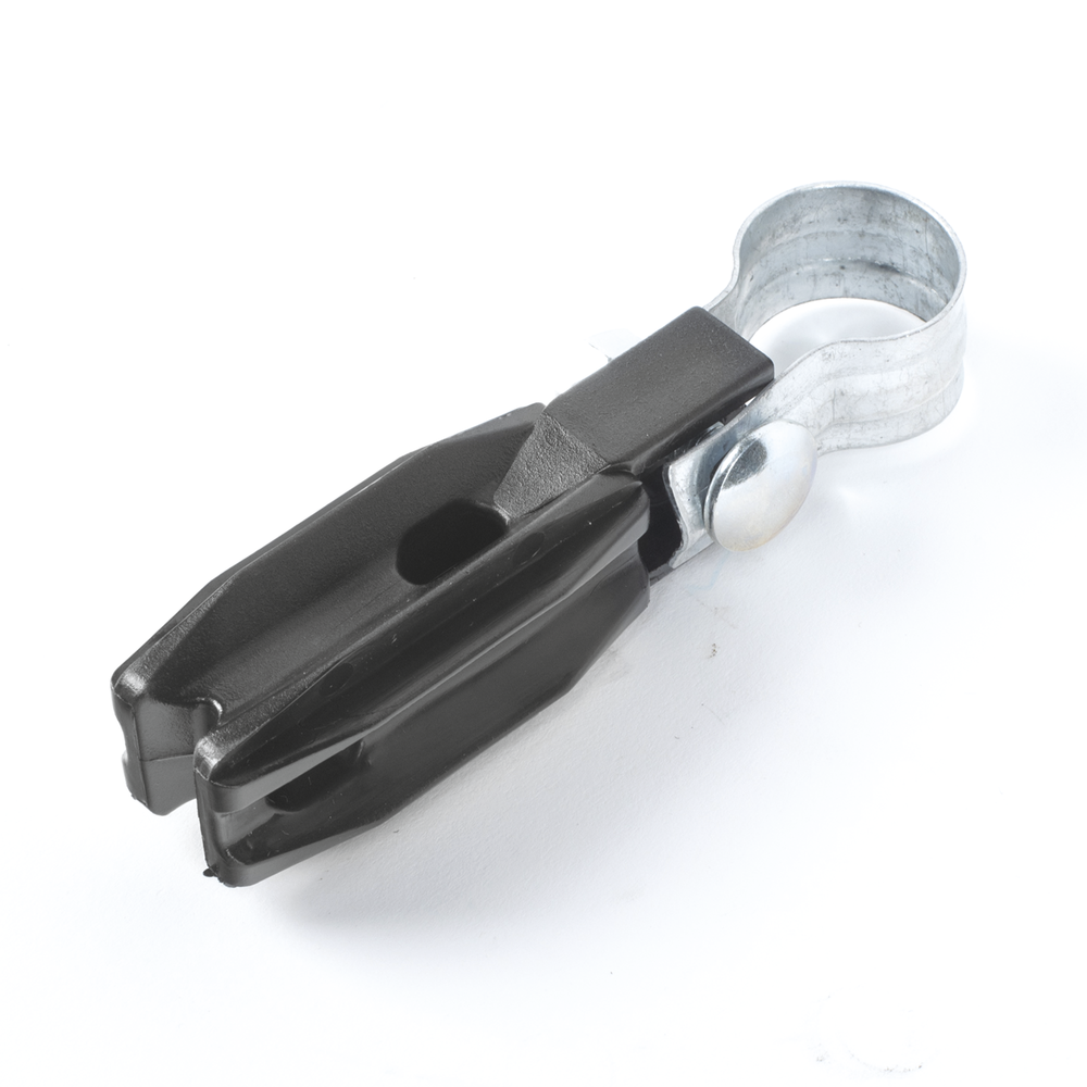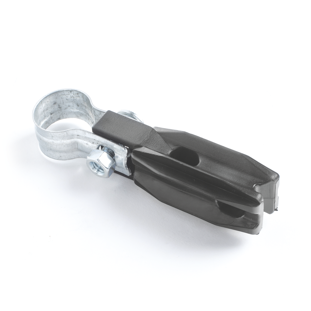 Aislador de paso o esquina con abrazadera de 1' diametro para uso en poste de cerca electrica.