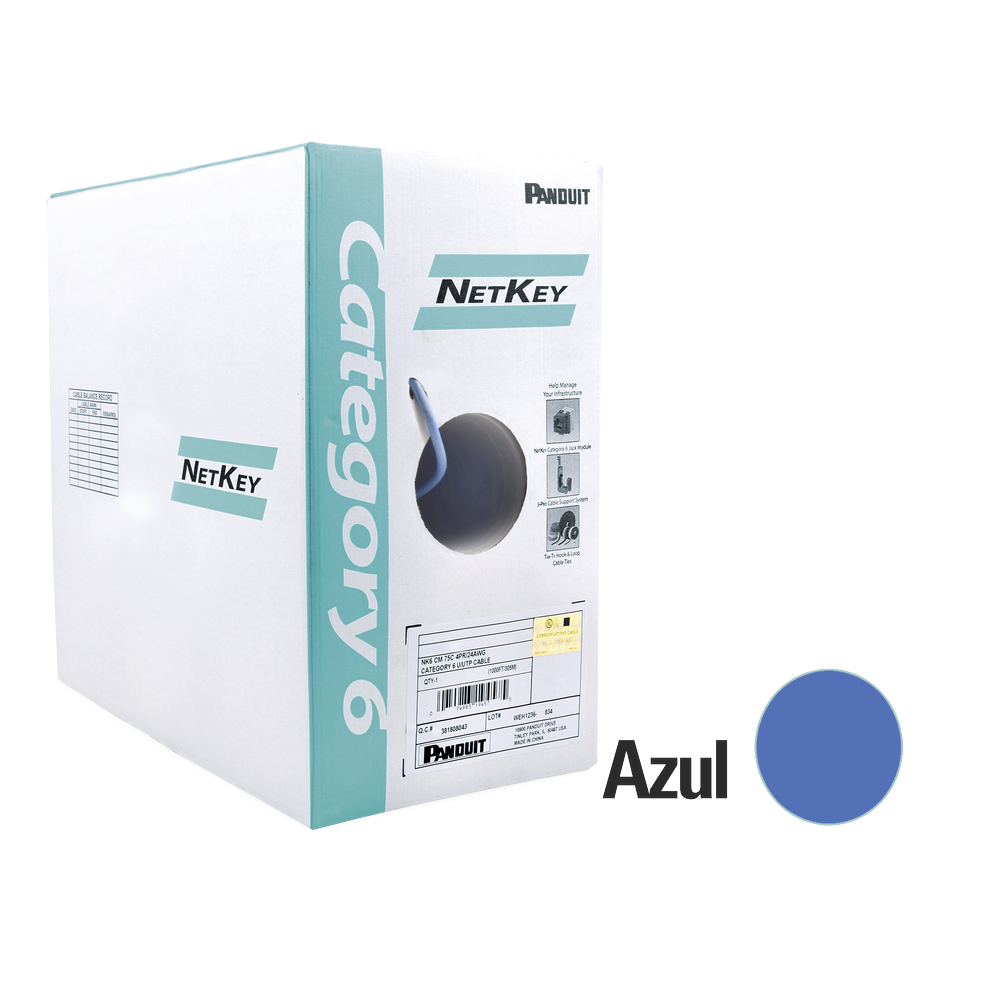 Bobina de Cable UTP 305 m. de Cobre, Azul, Categoría 6 (24 AWG), 1000Mbps, LSZH (Bajo Humo, Cero Halógenos), de 4 pares