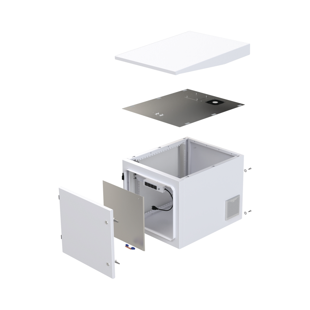 Gabinete PROFUNDO de Exterior de 9UR con Ventiladores y Termostato (Montaje a poste o torre se vende por separado).