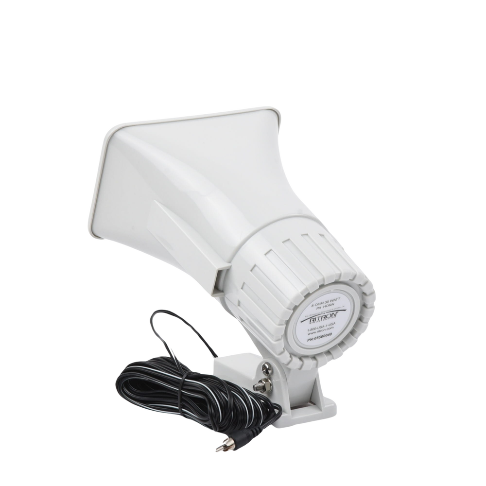 Bocina PA para sistemas de voceo Ritron de la serie LM, compatible con modelos LMV150 y LMU450 capaz de entregar hasta 95 dB @ 15 metros. Transmita sus mensajes fuerte y claro incluso en ambientes ruidosos.